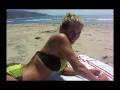 Kathryn doing yoga/pilates on the beach.