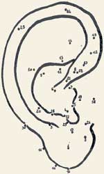 Le point de départ de ceux-ci fut la constatation par Nogier que la cautérisation d'un point précis de l'oreille était très efficace dans le cas des névralgies sciatiques.