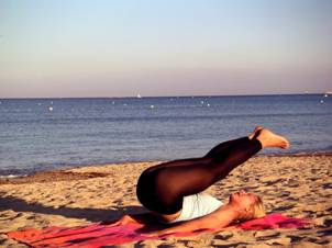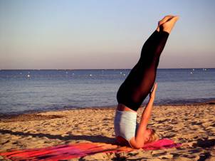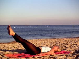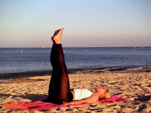 Amener les jambes à la verticale. Jusqu'ici donc, Sarvangâsana et Charrue sont identiques.